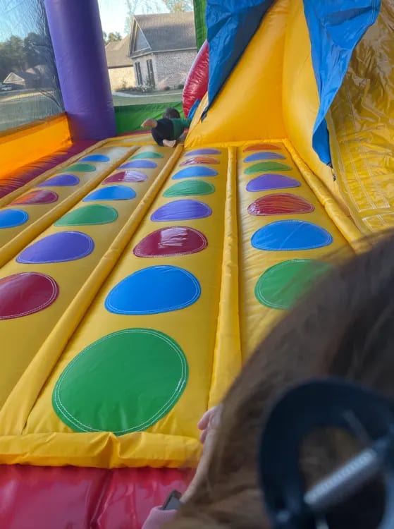 And if that wasn't enough, our Kids Combo Indoor Outdoor Bounce House comes with a built-in twister game mat. Let your little ones twist and turn as they try to keep their balance and have a blast with their friends.